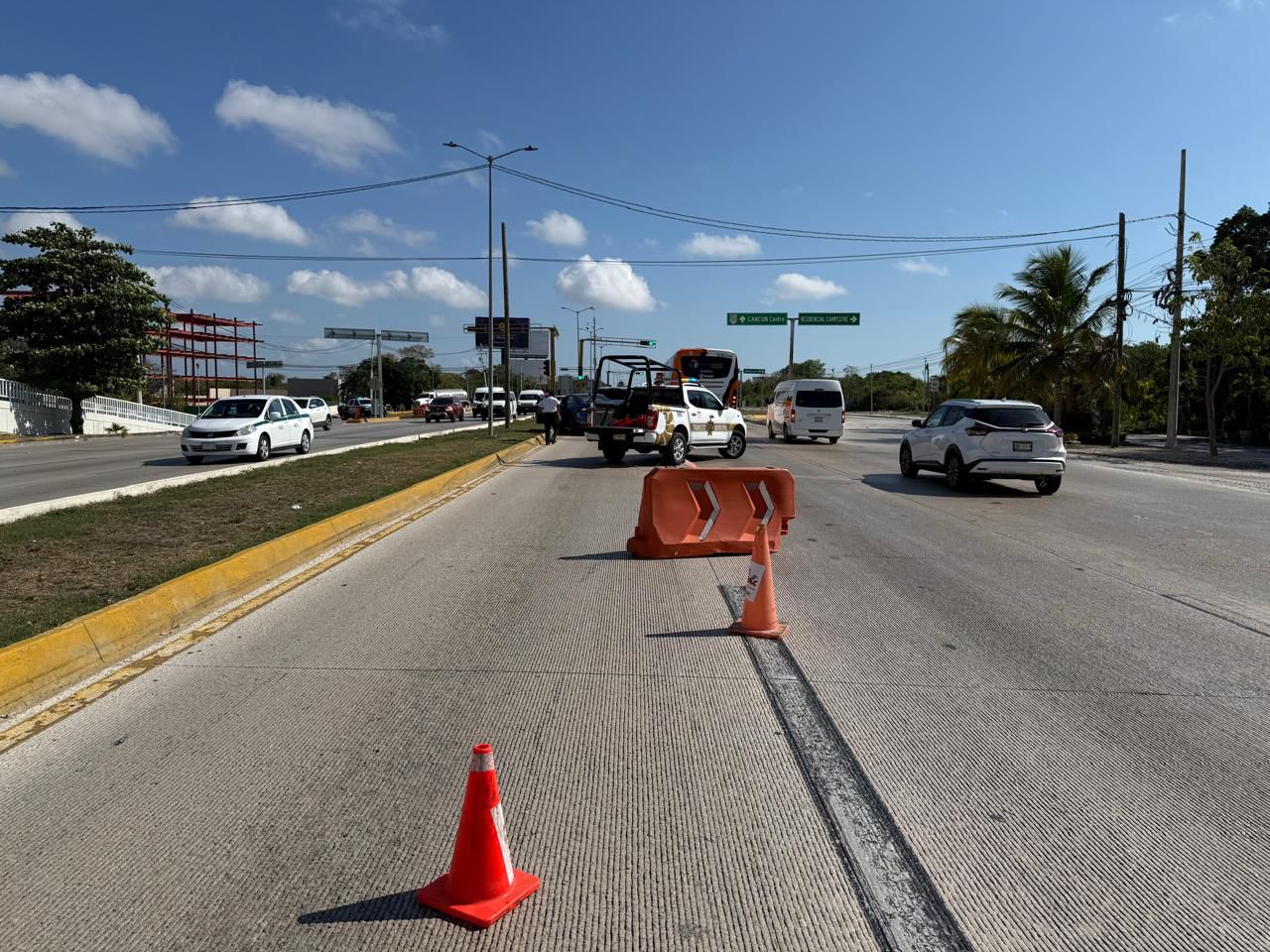 Cancún, 18 de mayo.- Un aparatoso accidente de tránsito que involucró a cuatro vehículos se registró la mañana de este domingo en el bulevar Colosio, a la altura del fraccionamiento Residencial Campestre. A pesar del impacto múltiple, no se reportaron personas lesionadas.
