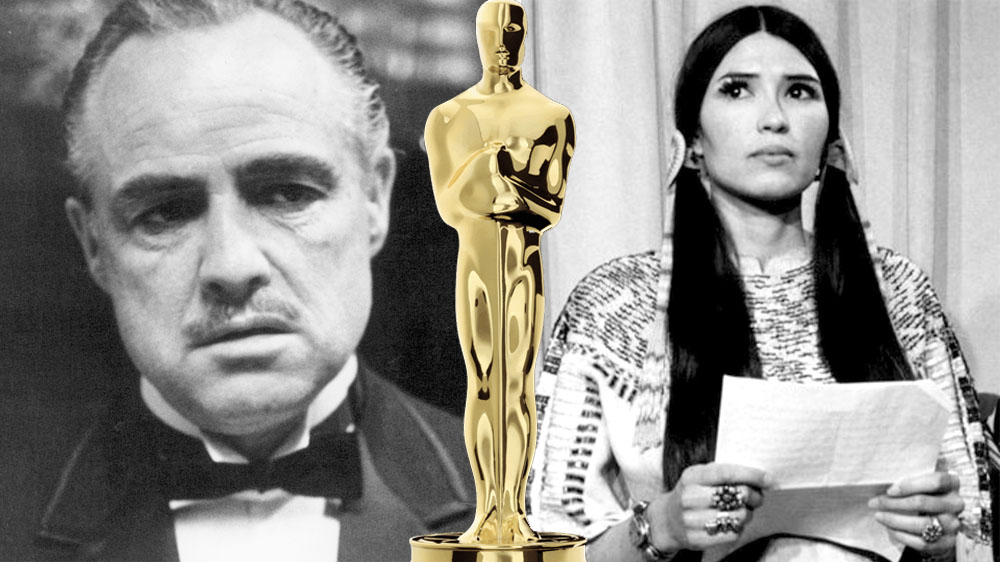 Con el objetivo de expresar a la Academia su rechazo por el maltrato que recibían los pueblos indígenas y la imagen estereotipada que se proyectaba de ellas en las películas de Hollywood, envió a la ceremonia a Sacheen Littlefeather, una nativa americana quien subió al estrado para rechazar el mítico galardón.