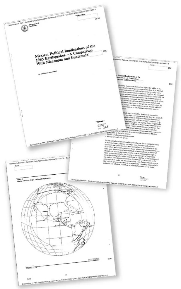 El informe de la Agencia Central de Inteligencia (CIA por sus siglas en inglés) titulado México: Implicaciones políticas de los terremotos de 1985 – Una comparación con Nicaragua y Guatemala no fue una simple lectura del desastre, puede interpretarse hoy como una predicción. En sus páginas, redactadas con la precisión quirúrgica de los servicios de inteligencia y el espionaje, se anticipa el colapso de un régimen que parecía eterno: