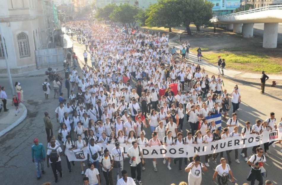 En el inicio de la marcha, el presidente de la Federación Estudiantil Universitaria (FEU), Ricardo Rodríguez, afirmó que el dolor que despierta el fusilamiento de aquellos ocho jóvenes alcanza a la juventud cubana del presente y confirma la voluntad juvenil de protestar ante cualquier injusticia.