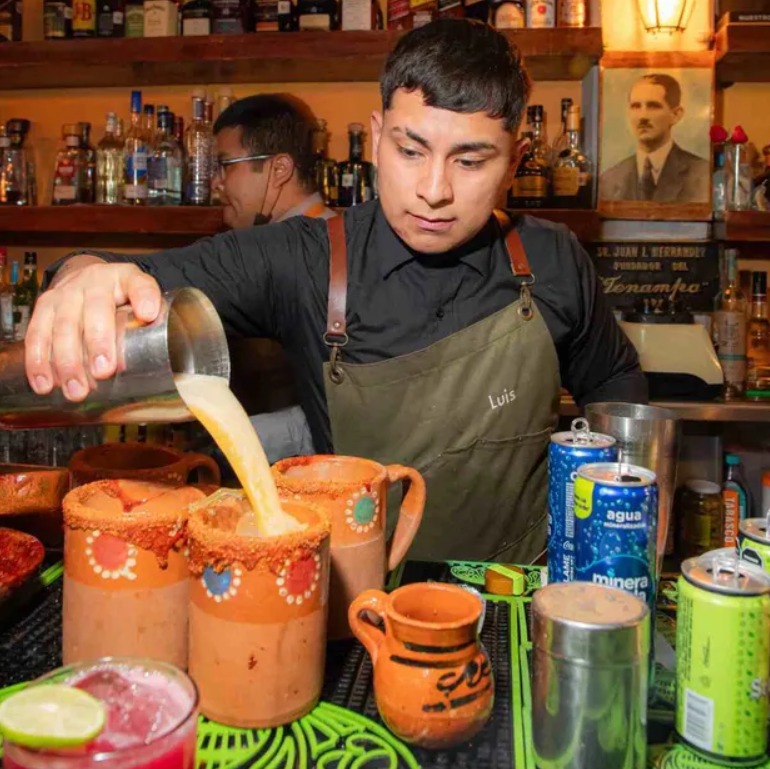 “Yo empecé como garrotero. Después, un día los cantineros se fueron a una fiesta y no regresaron, así que el gerente de ese entonces nos puso a un compañero y a mí detrás de la barra. Así estuve mucho tiempo pero he hecho de todo: mesero, estuve en la puerta y también año y medio como cocinero; luego me pasé a la parte de administración, ayudando con el inventario, y fui superándome hasta el lugar donde estoy ahorita”, agrega Isaías, quien actualmente es director general del lugar.