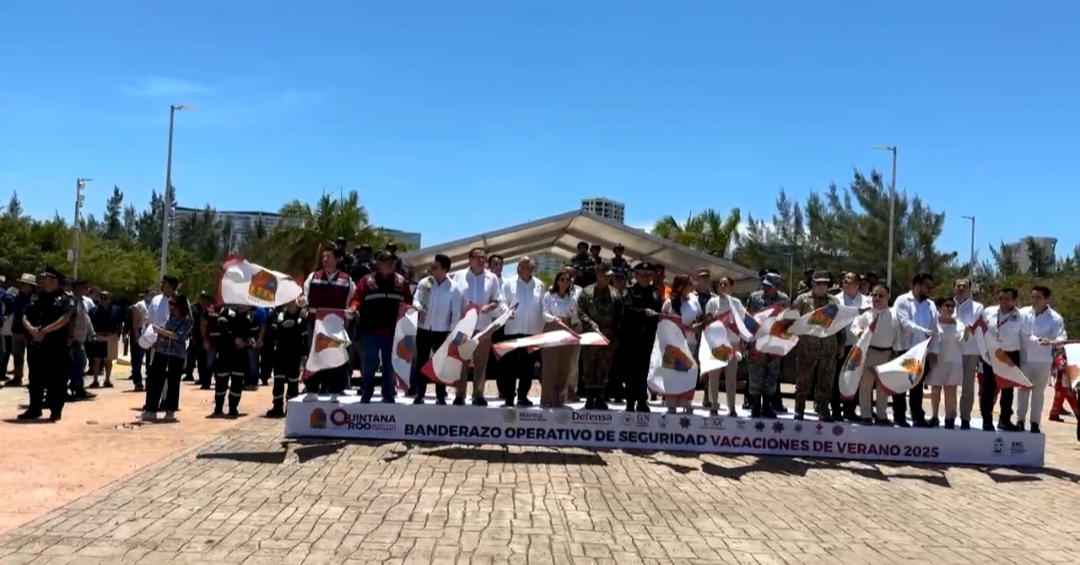 Cancún, 18 de julio.- Con un imponente despliegue de fuerza y un llamado a la tranquilidad de residentes y turistas, las autoridades de Quintana Roo dieron hoy el banderazo de salida al operativo “Verano Seguro 2025” desde el Malecón Tajamar en Cancún.