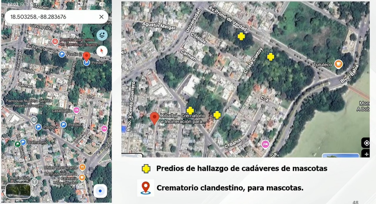 De acuerdo con las investigaciones, los imputados administraban un establecimiento que operaba bajo el nombre de crematorio de mascotas Xibalbá, ubicado en la colonia Barrio Bravo de Chetumal.