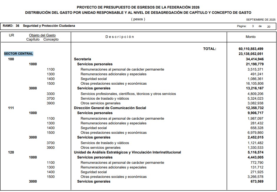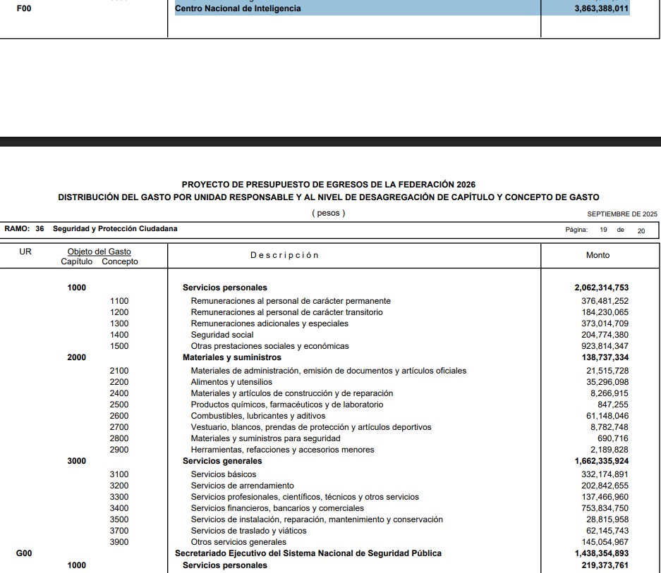 En tanto, para el 2026 la SSPC – ya sin la carga de la GN, sobre la cual desde hace años no tenía mando-, quiere 60 mil 110 millones de pesos, contra los 36 mil 632 millones autorizados en 2025.