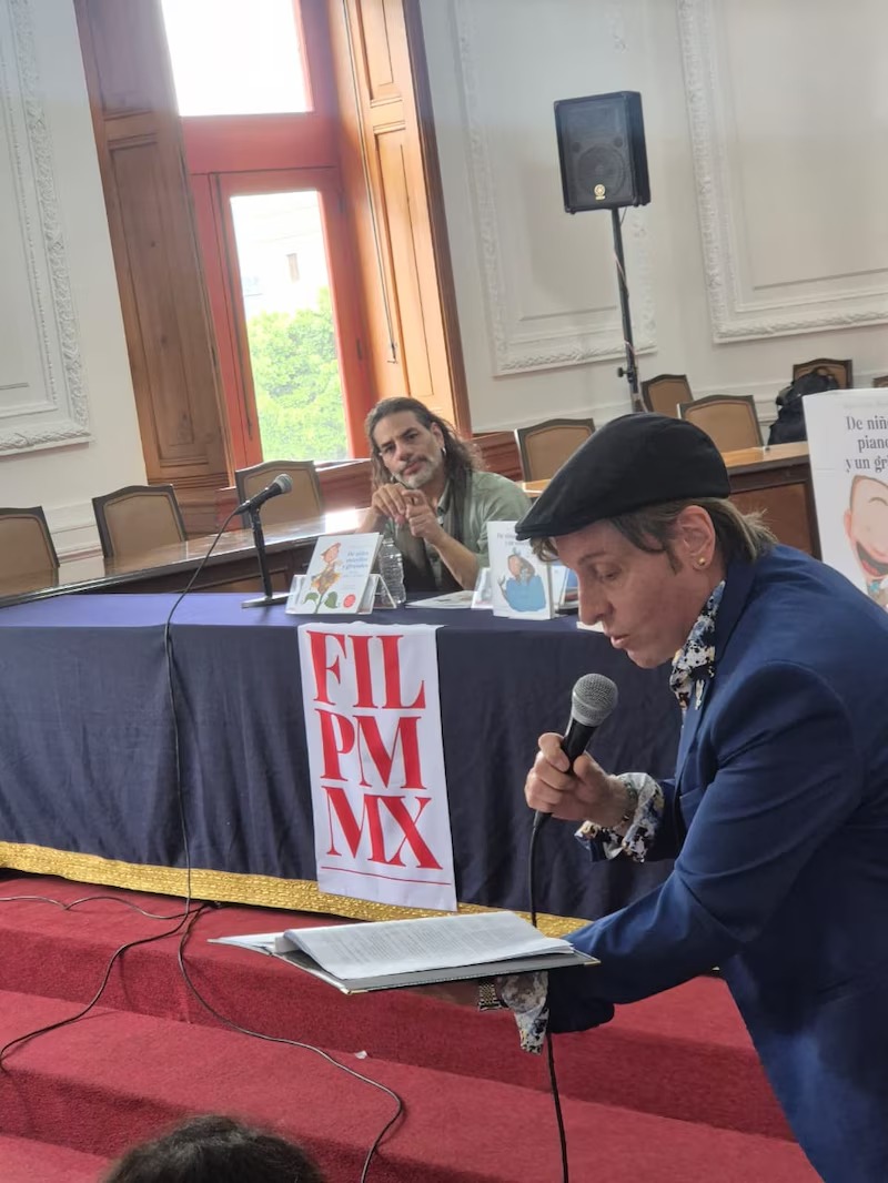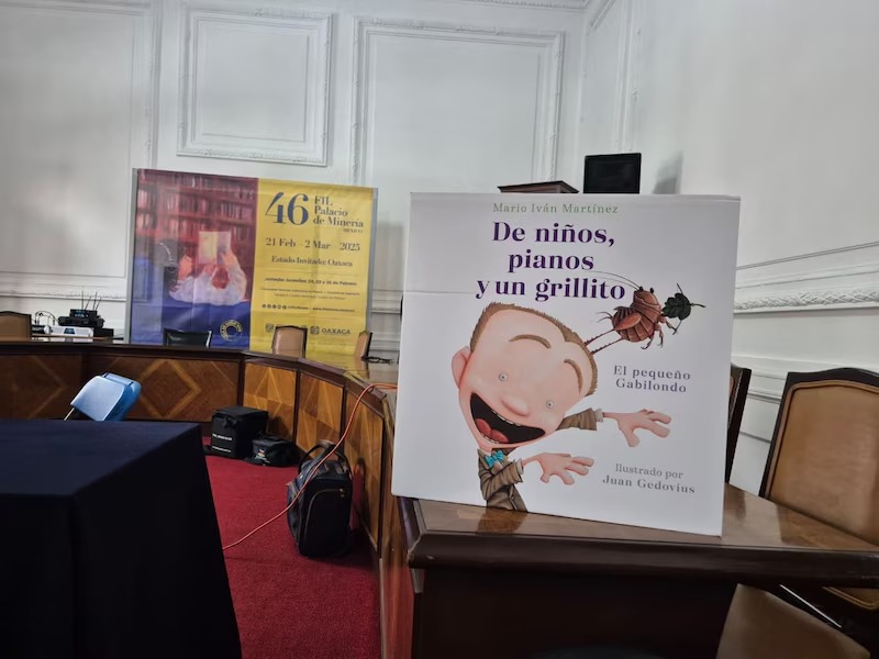 En el segundo día de la Feria Internacional del Libro en el Palacio de Minería, Mario Iván Martínez y Juan Gedovius presentaron “De niños, pianos y un grillito” (Alfaguara Infantil, 2024) que cuenta cómo Pancho Gabilondo, un niño desinteresado en la escuela, se convirtió en una estrella de la radio en la famosa estación XEW, acompañado por su fiel amigo Grillito Cantor.