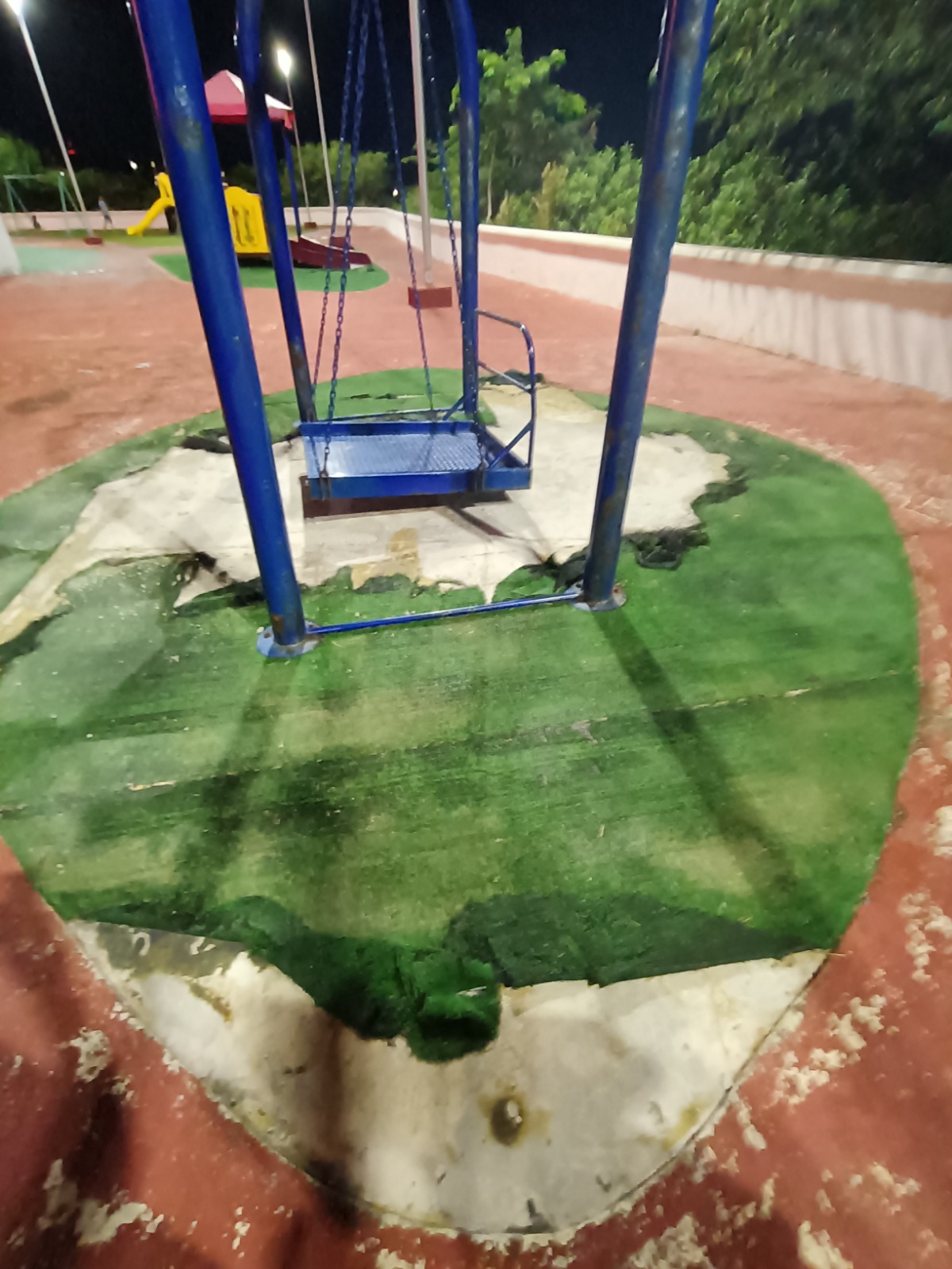 Desde agosto de 2023, se señaló que algunos juegos, como la resbaladilla y un columpio, ya presentaban daños considerables; la resbaladilla estaba rota, el pasto sintético de un área inclusiva se desprendía y un columpio se había caído. Desde entonces, no se han realizado reparaciones o mejoras, y el estado de las instalaciones es cada vez peor.