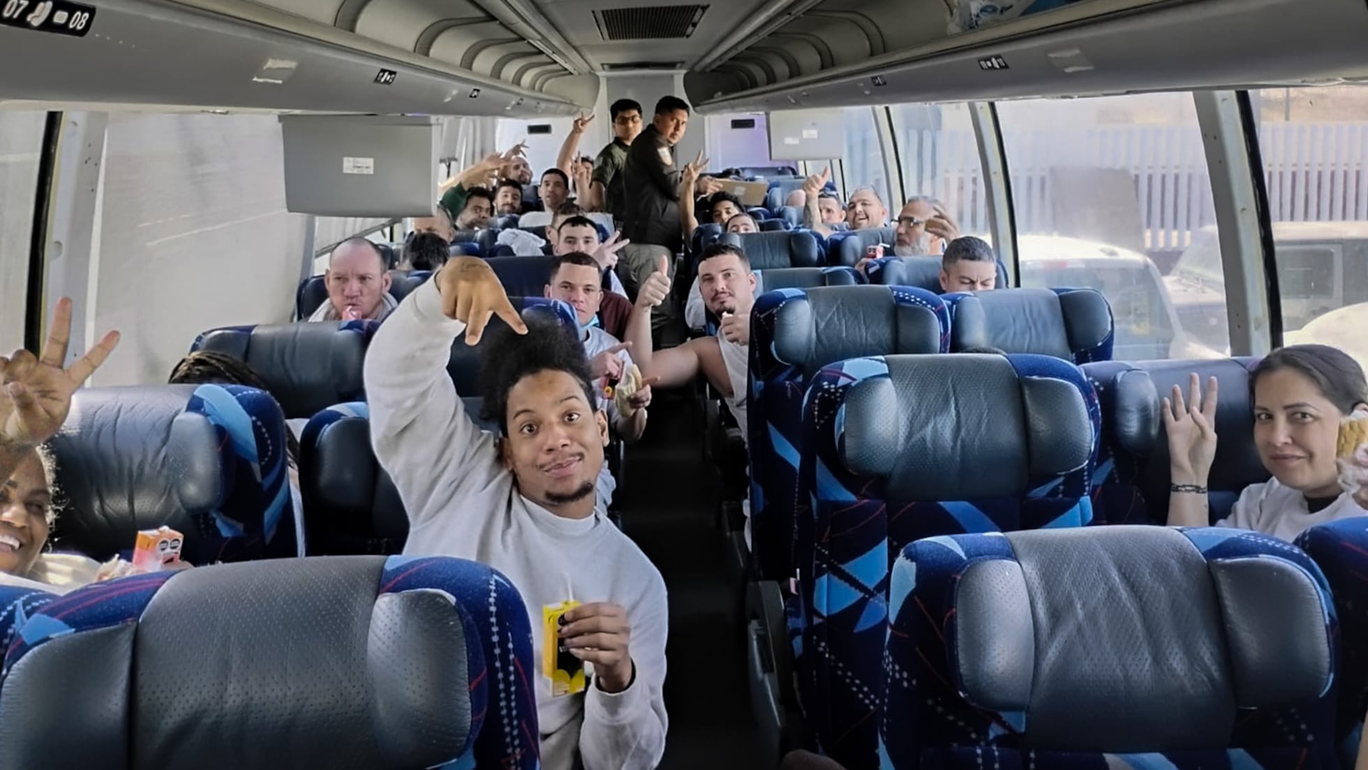 Fue ahí donde conoció a Alberto, un agente federal de migración de la Garita Internacional de Otay, quien pidió cambiar su nombre por protección. Según explica, así funciona el trámite en la frontera: “El ICE nos da un documento con sus nombres, la nacionalidad, si tienen alguna condición médica. Nosotros les quitamos las esposas, les damos de comer, somos humanitarios”, cuenta. “Yo les dije: ‘Aquí ustedes no están presos, aquí están libres, esto solo es un protocolo’”. Alberto y otros oficiales partieron con 51 migrantes en autobuses hasta la estación migratoria de Ciudad de México.
