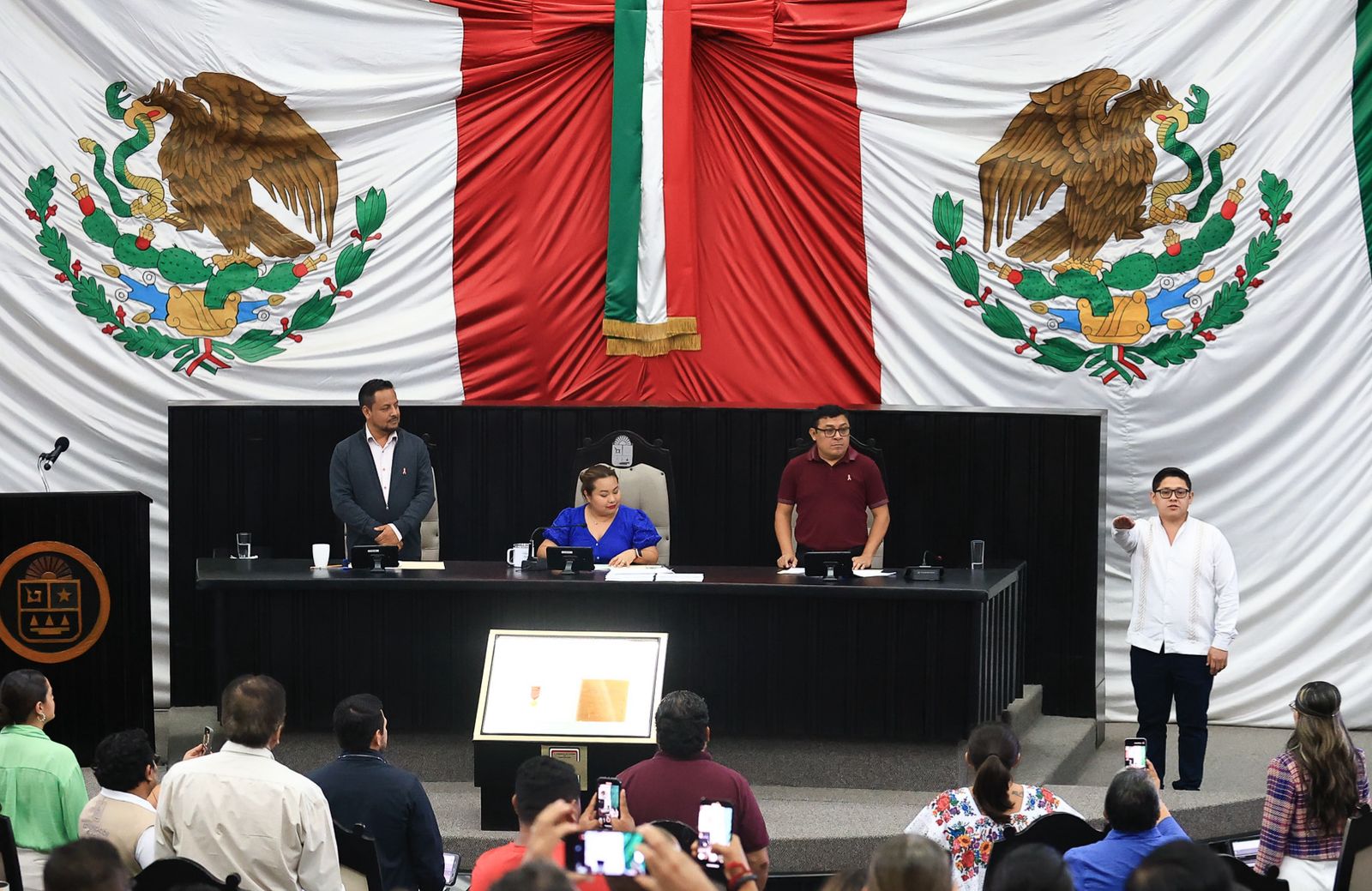 Por otra parte, se tomó la protesta de Ley del ciudadano César Santiago Augusto Frías Canche como diputado integrante de la XVIII Legislatura.
