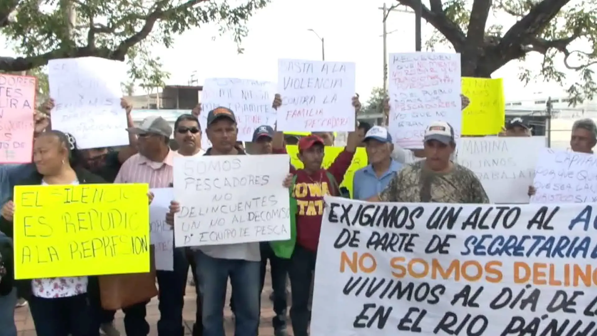 Más de 50 pescadores y sus familias se manifiestan en rechazo a las acciones de la Semar y la Capitanía del Puerto, que según ellos buscan favorecer el turismo en lugar de proteger sus medios de vida