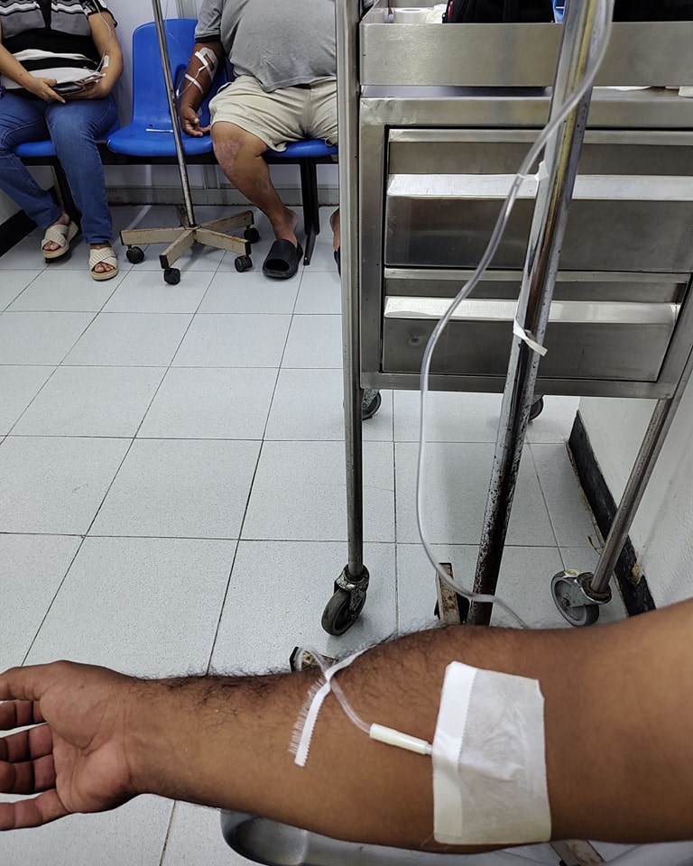 Tras la inyección, el paciente presentó síntomas de intoxicación como inflamación facial y malestar general. Regresó al hospital, donde fue tratado de emergencia para contrarrestar los efectos adversos, aunque expresó su inconformidad por haber sido canalizado en un pasillo.