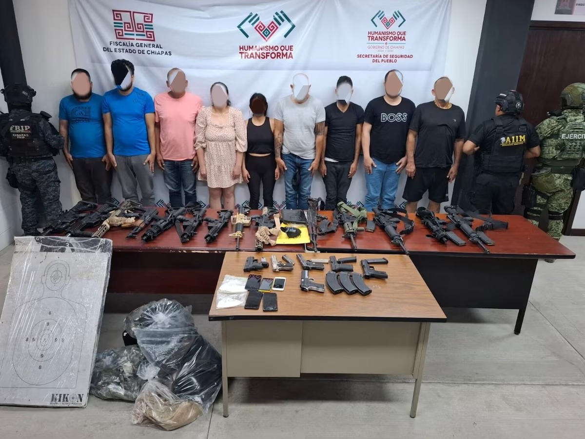 El gobernador de Chiapas, Eduardo Ramírez, informó la desarticulación de una banda delictiva ligada con actos de privación de la libertad. Se trata de la captura de 10 personas originarias de diferentes partes del país y que fueron aseguradas junto con armas, vehículos y diversos animales.