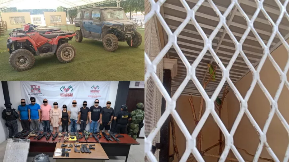 Los detenidos fueron sorprendidos con 14 armas largas, 6 cortas, vehículos, cuatrimotos y animales como monos y caballos durante dos operativos en Tuxtla Gutiérrez y Ocozocoautla