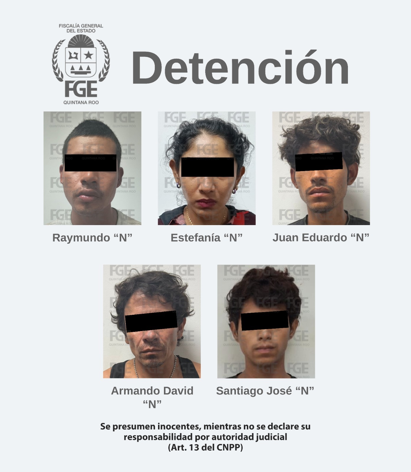 Cancún, 7 de enero.- En una acción coordinada entre la Fiscalía General del Estado, la Guardia Nacional y la Policía Municipal, se logró la captura de cinco personas presuntamente dedicadas al narcomenudeo. Las autoridades señalaron que, de acuerdo con las primeras investigaciones, los detenidos forman parte de una banda criminal generadora de violencia que opera en diversos puntos de este municipio de Benito Juárez.