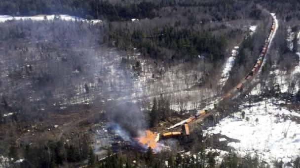 El descarrilamiento del tren de carga en abril de 2023 ocurrió en el densamente boscoso condado de Somerset, Maine, y también provocó un incendio forestal.