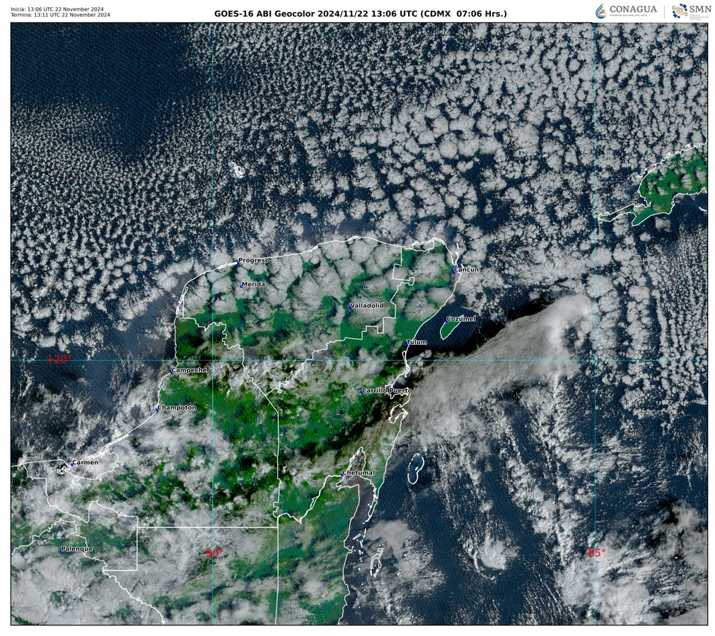 De acuerdo con la sinopsis meteorológica, el ingreso de humedad del mar Caribe, en interacción con inestabilidad de niveles altos de la atmósfera, propiciará cielo despejado a parcialmente nublado con muy baja probabilidad de lluvia en Quintana Roo.