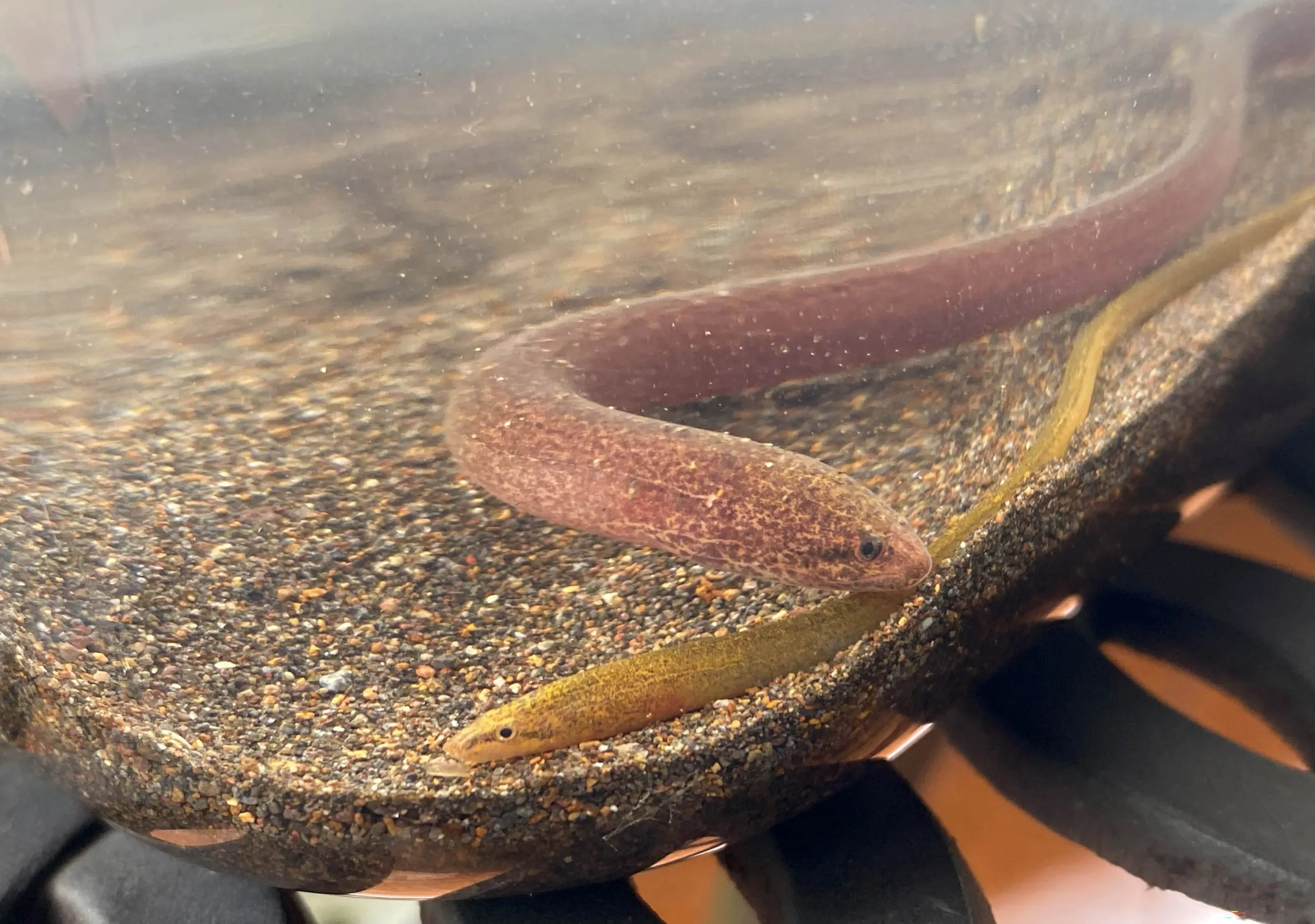 Es una rara anguila falsa adaptada a vivir bajo tierra en completa oscuridad