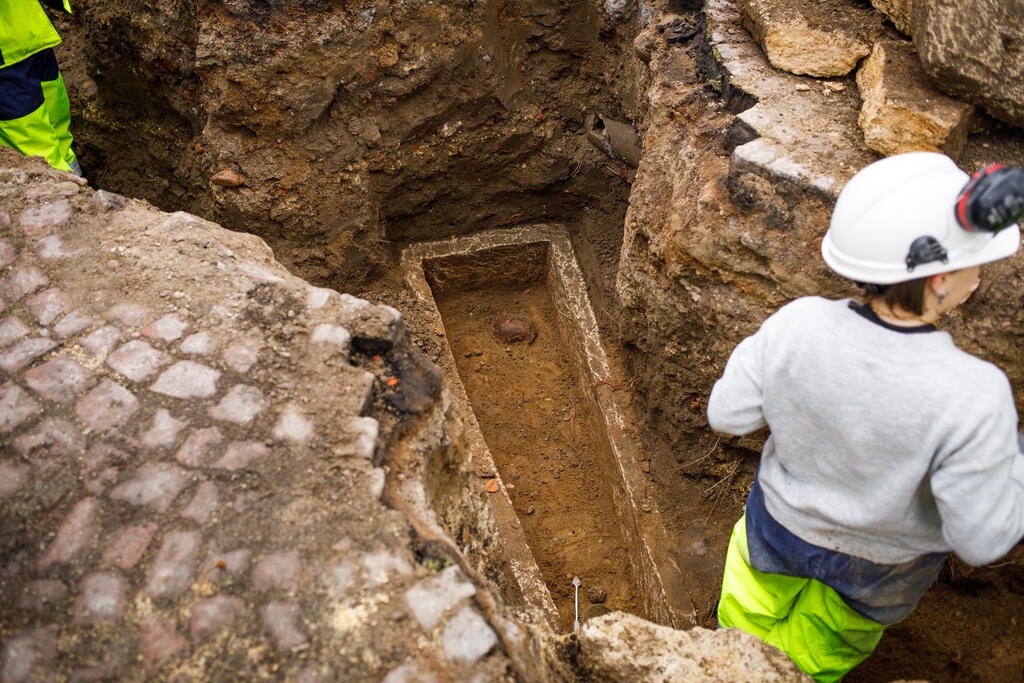 “En la Edad Media, los cementerios estaban unidos a las iglesias. Así que se trata de hallazgos bastante normales y clásicos. Los esperábamos, ya que estamos al lado de [la iglesia de] Sainte-Croix”, explicó Camille Vanhove, responsable de las obras de excavación preventiva de la plaza Pierre Renaudel. “Sin embargo, no sabíamos hasta dónde se extendía el cementerio. Ahora empezamos a ver las cosas con más claridad. Se extiende casi hasta la fachada de la iglesia”, añadió.