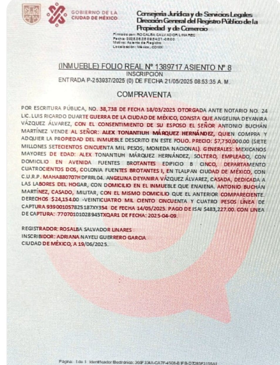Alex Tonatiuh Márquez Hernández pasó de reportar como su domicilio un sencillo departamento en la Colonia Fuentes Brotantes, en Tlalpan, como declara en la compra-venta del penthouse, a adquirir una lujosa propiedad en una de las zonas residenciales más codiciadas de la Ciudad de México.