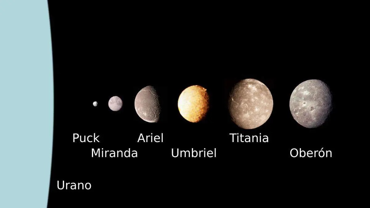 Urano es el tercer planeta más grande del Sistema Solar y es reconocido por su color azul verdoso, su rotación de lado, sus tenues anillos que lo rodean y además, por sus lunas, mismas que lo vuelven único, pues es el astro con más lunas internas pequeñas.