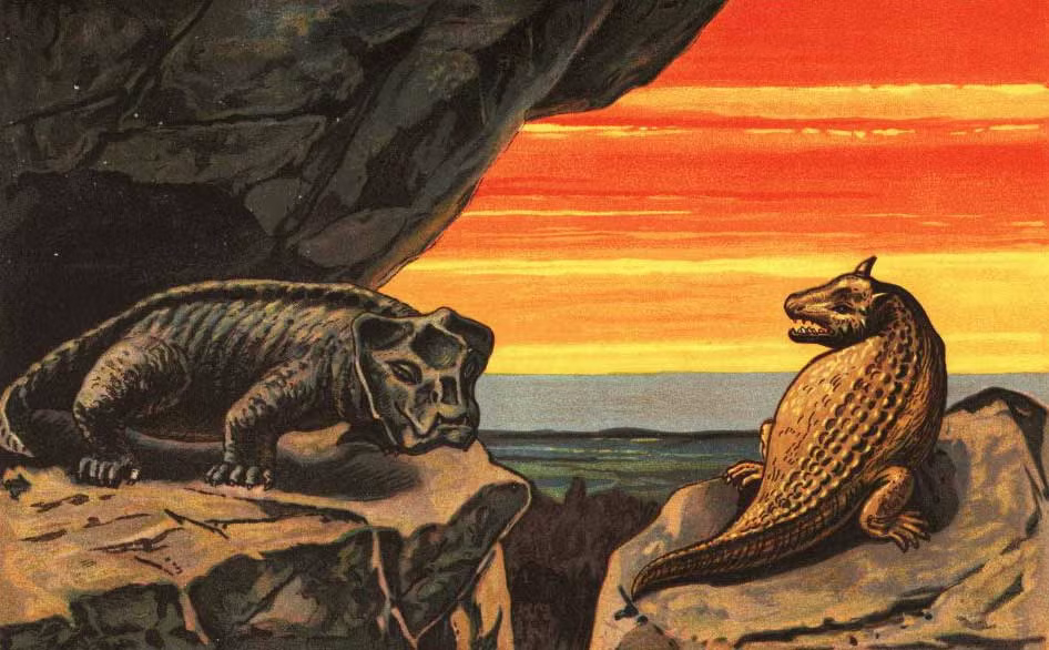 Las primeras descripciones científicas formales de esta serpiente cornuda -supuesto miembro del grupo de los dicinodontes- aparecieron en 1845. Teniendo en cuenta la abundancia de fósiles de dicinodontes hallados en la cuenca del Karoo, en Sudáfrica, algunos se han preguntado si esta serpiente cornuda, considerada mítica desde hace mucho tiempo, tiene sus raíces en la realidad. El descubrimiento de arte rupestre fechado entre 1821 y 1835 añade aún más credibilidad a la leyenda, ya que la pintura es más antigua que la primera referencia formal al dicinodonte. Si tenemos suerte, podría aportar más pistas sobre la relación de esta serpiente cornuda con la cultura indígena san de Sudáfrica.