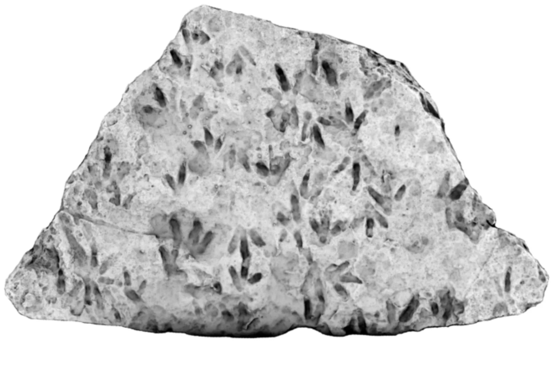 Con un molde, imágenes 3D y filtros de luz, Romilio documentó 66 huellas en la superficie de la piedra. En cada una hay tres dedos, lo que las identifica como pertenecientes a la icnoespecie Anomoepus scambus: pequeños herbívoros con patas largas, brazos cortos, pico y un “cuerpo rechoncho”, según el paleontólogo (por icnoespecie los paleontólogos hacen referencia a una especie basada en fósiles de rastro como huellas, rastros, nidos y excremento en lugar de dientes o huesos). Cuando estos regordetes dinos pasaron por el barro mojado, avanzaban a unos 6 kilómetros por hora.