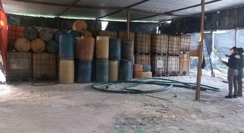 Hasta el momento solamente se ha dicho que durante un operarivo encabezado por la Fiscalía General de la Republica (FGR), fue asegurado un predio que pudo ser base de distribución de combustible robado (huachicol) destinado a la construcción del Tren Maya, en territorio del municipio de Escárcega.