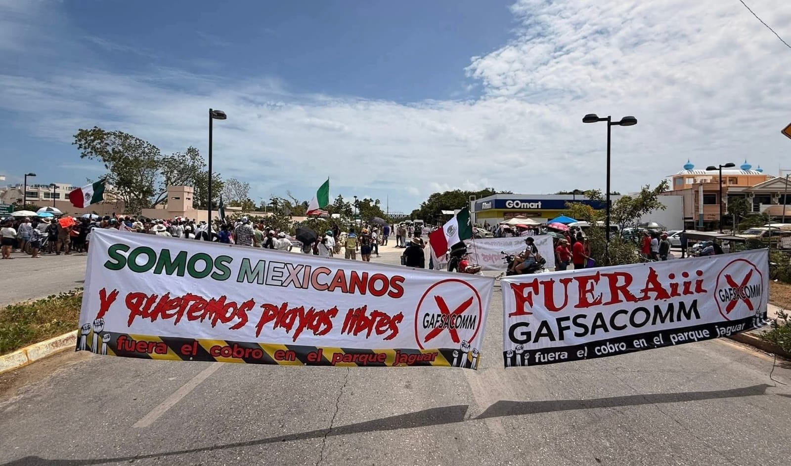 Durante gran parte del domingo, habitantes de Tulum, protestaron por la privatización de las playas y la zona arqueológica de Tulum.