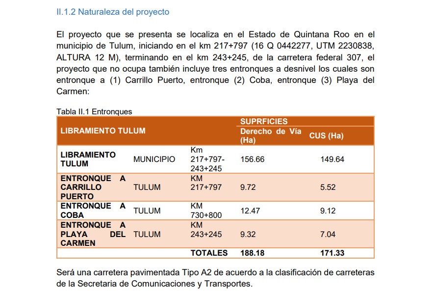Por otra parte, la SICT ya había presentado una MIA en junio del 2020 para retomar el proyecto del libramiento de Tulum, pero la Semarnat la rechazó porque no pudo explicar cómo podría evitar que el proyecto afectase la Reserva de la Biosfera de Sian Ka’an, única área natural protegida existente en las inmediaciones en ese entonces, junto con el Parque Nacional Tulum.