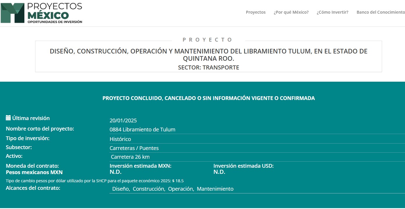 Por lo pronto, el proyecto tan esperado del libramiento de Tulum ha quedado fuera de los planes inmediatos de la SICT, hasta nuevo aviso.