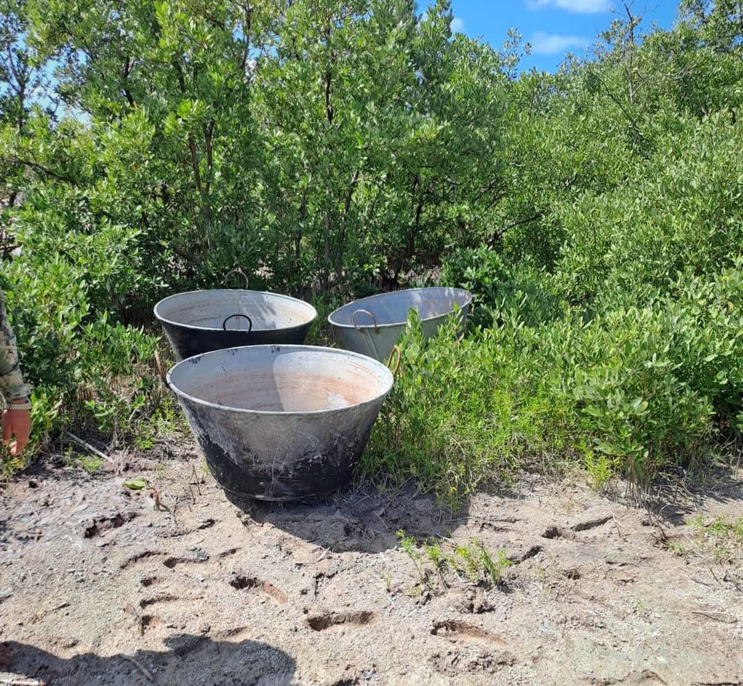 Durante un recorrido la marina detectó una cocina clandestina abandonada, asegurando varios casos y sal de grano