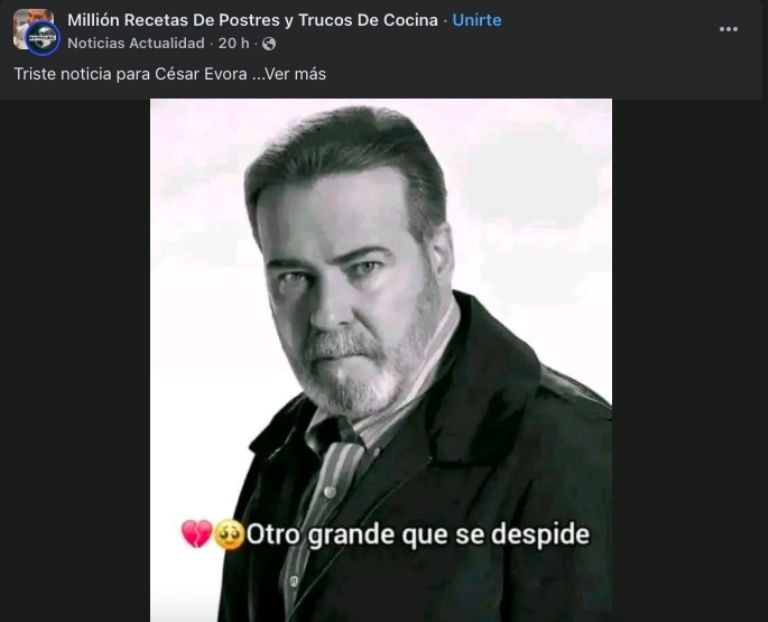 Y es que cabe mencionar que no es la única publicación en redes sociales que alerta sobre el actor César Évora, pues en otra más exponen que el querido actor quien actualmente se encuentra en plenas grabaciones de la nueva telenovela “Sabor a ti”, presuntamente atraviesa un cuadro muy complicado de salud, lo cual también carece de veracidad.
