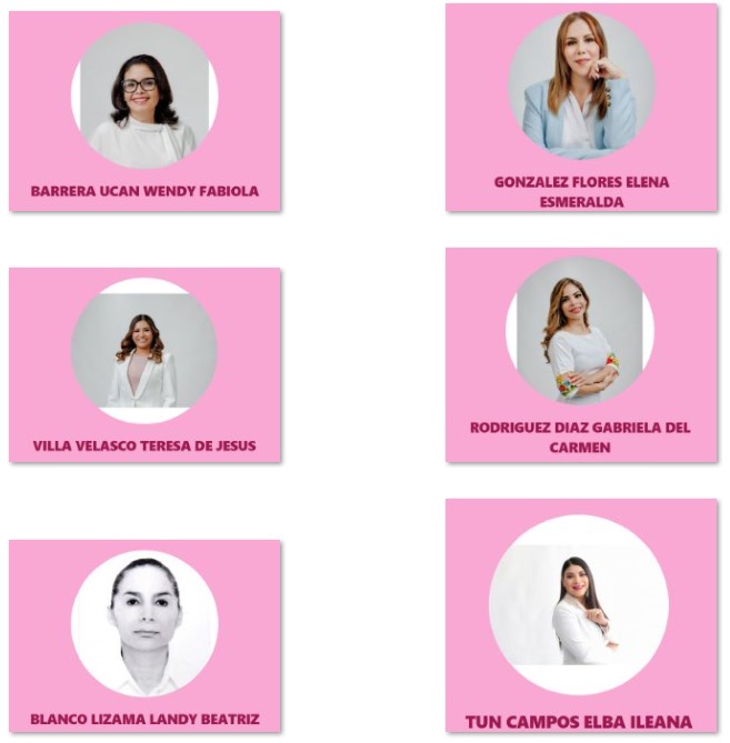 Se trata de Wendy Fabiola Barrera Ucán, Elena Esmeralda González Flores, Gabriela del Carmen Rodríguez Díaz, Teresa de Jesús Villa Velasco, Fabián Azael Gamboa Song, Omar Yael Landeros Rosado y José Raúl Galán Muedano, postulados por el Poder Ejecutivo; así como Landy Beatriz Blanco Lizama, postulada por los poderes Ejecutivo y Judicial; José de la Peña Ruiz de Chávez, candidato del Poder Ejecutivo, todos y todas con magistratura asegurada por el sistema de votación y por su forma de postulación.