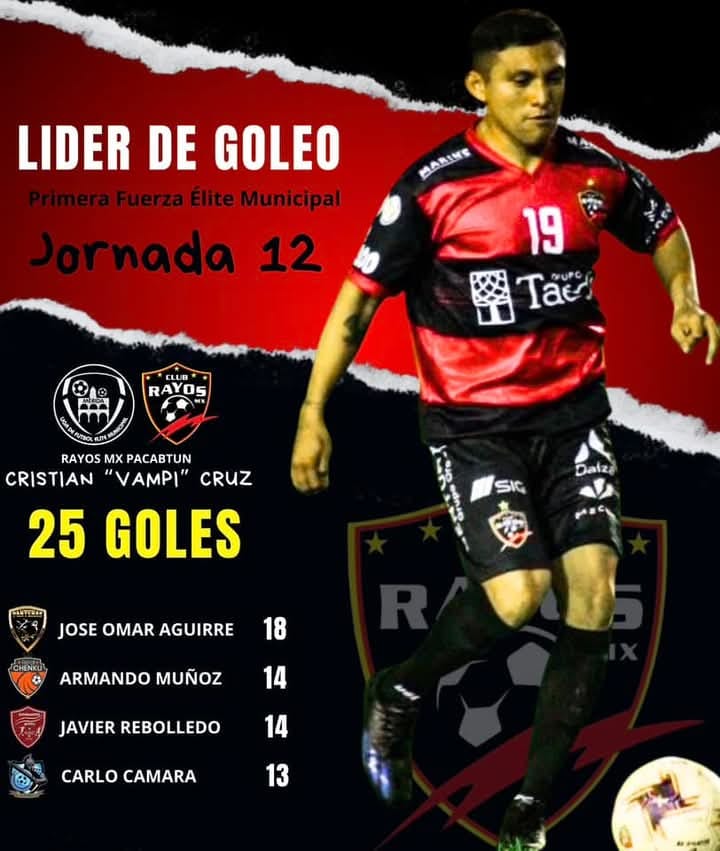 En la disputa por el campeonato de goleo están José Omar de las Panteras con 4 anotaciones en el primer lugar, además de Armando Muñoz del Real Chenkú y Javier Rebolledo de los Estudiantes del COBAY con 14 tantos para ambos, en el segundo y tercer puesto, respectivamente.