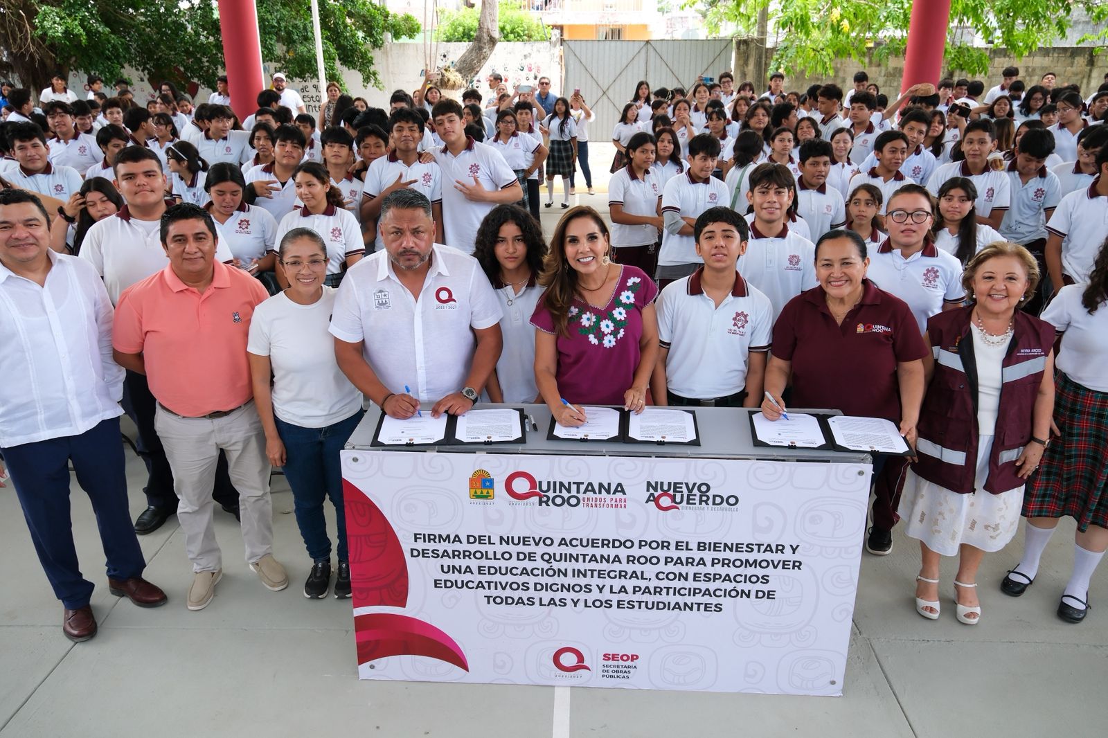 Como parte de la ceremonia inaugural, se firmó el Nuevo Acuerdo por el Bienestar y Desarrollo de Quintana Roo entre la Gobernadora, el titular de la SEOP y el Presidente del Comité de Contraloría Social, Erick Alexander Cano López.