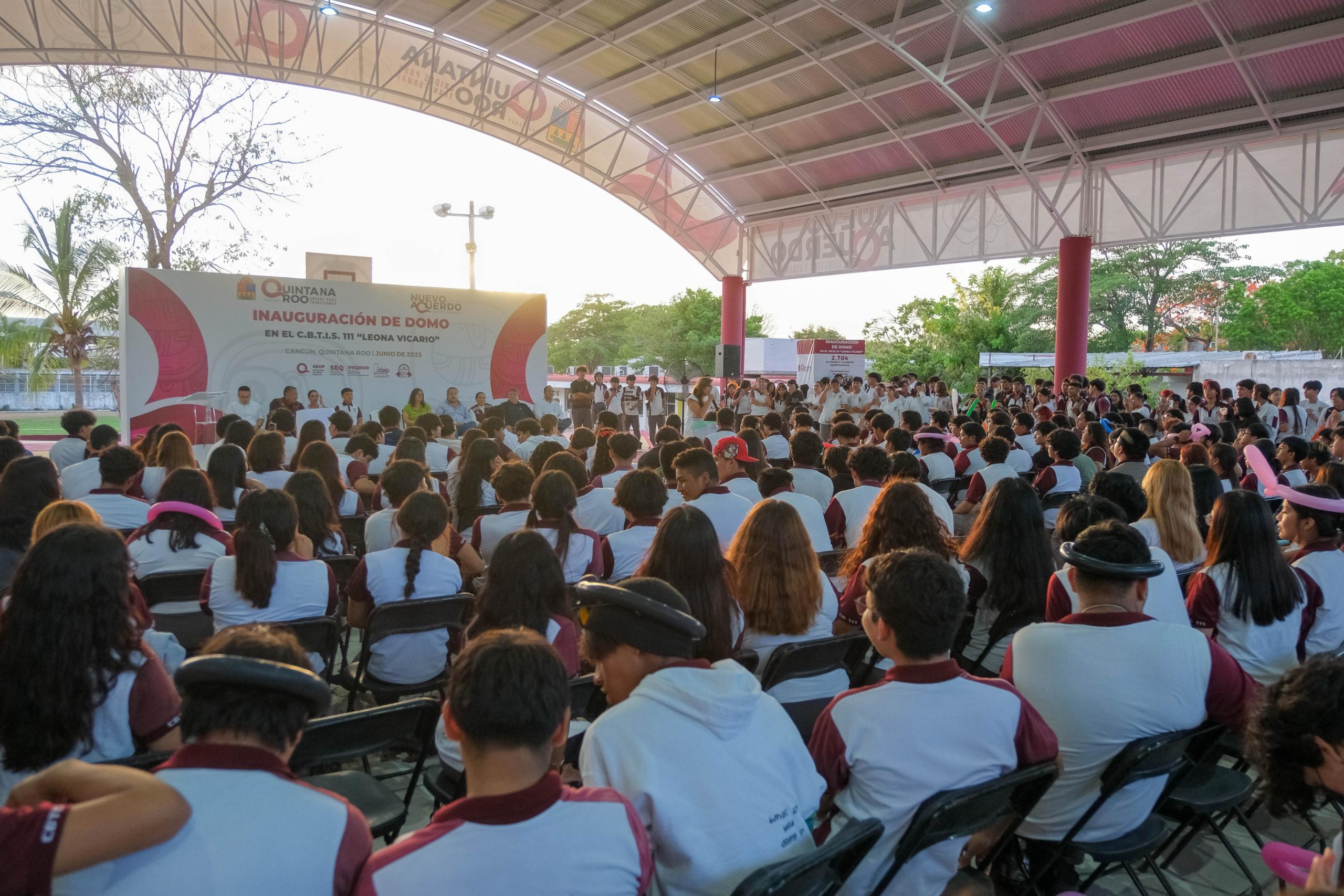 La gobernadora Mara Lezama Espinosa inauguró el domo deportivo del Centro de Bachillerato Tecnológico Industrial y de Servicios (CBTIS) número 111 “Leona Vicario”, la primera Preparatoria pública de Cancún, creada en 1977 y hubo de pasar 48 años para que tenga su domo.