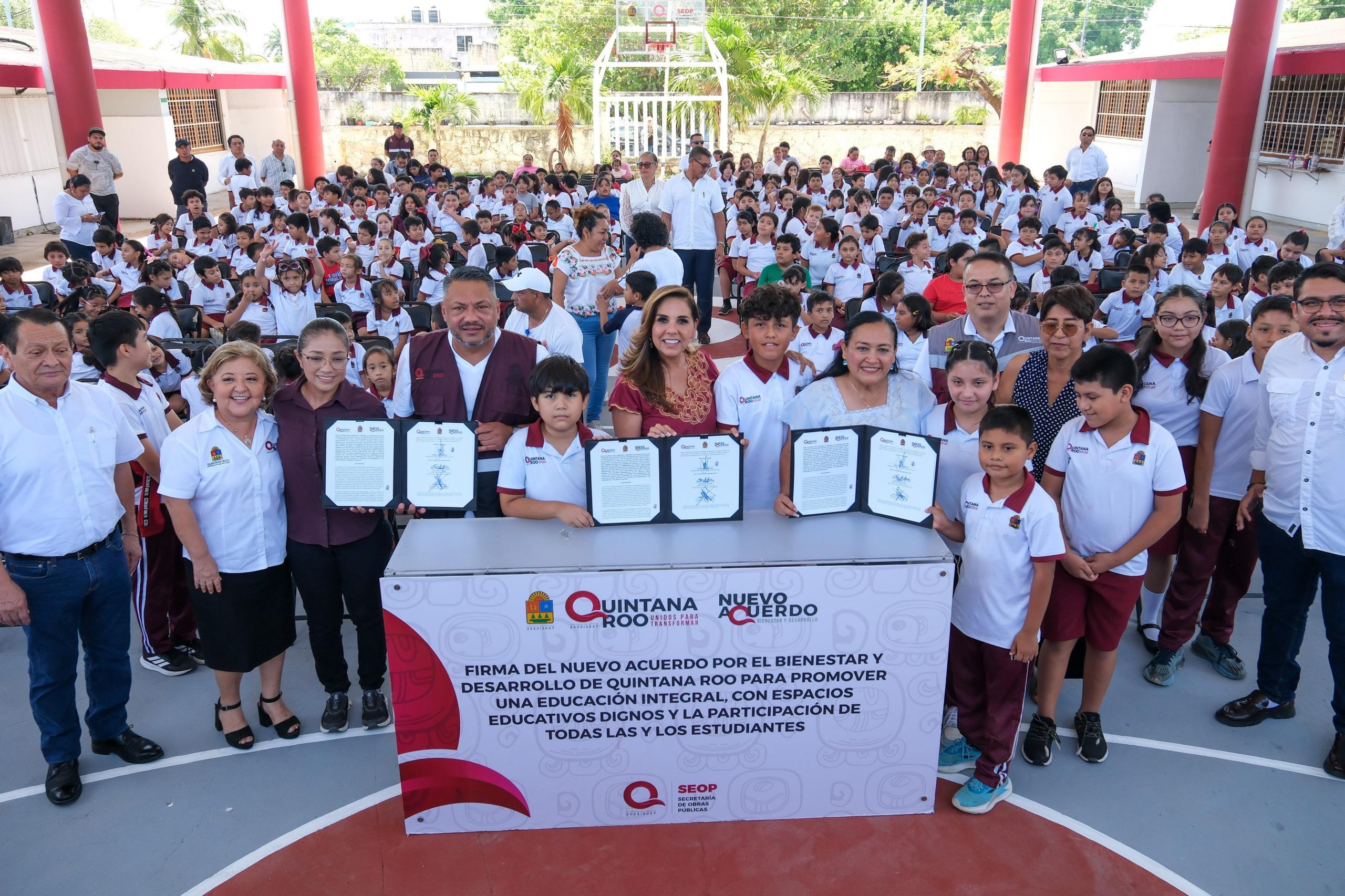 La Gobernadora, junto con las autoridades, cortó el listón inaugural y firmaron el Nuevo Acuerdo por el Bienestar y Desarrollo de Quintana Roo para promover una educación integral, con espacios educativos dignos.