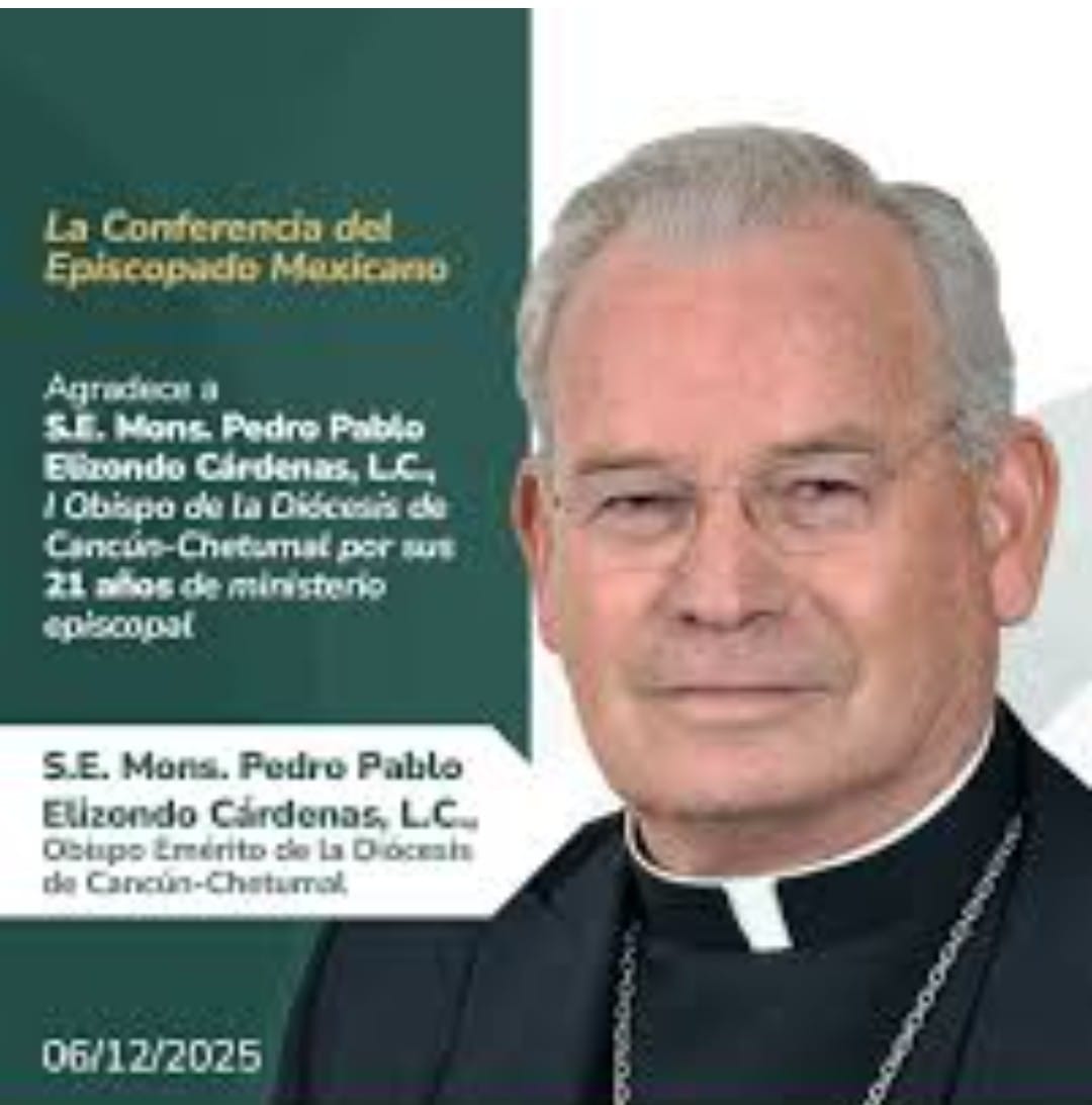 La Nunciatura Apostólica comunicaba del mismo modo que, aceptaba la renuncia al gobierno pastoral de la Diócesis de Cancún-Chetumal presentada por S.E. Mons. Pedro Pablo ELIZONDO CÁRDENAS, L.C. agradeciendo el ministerio episcopal que desempeñó generosamente, y pedían a Dios recompensar con abundancia su entrega y dedicación al servicio de la Iglesia en México.