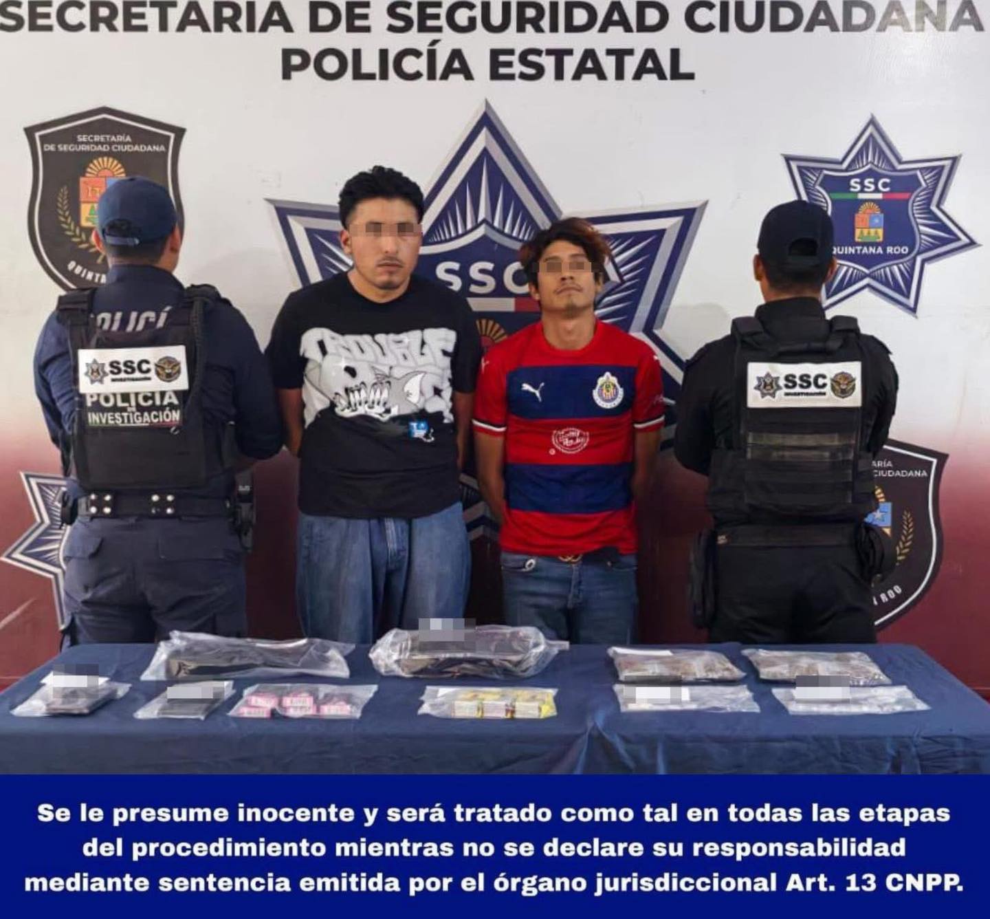 CANCÚN, 13 de diciembre. – La Secretaría de Seguridad Ciudadana informó la detención de Alexis “N” y Jalil Gibran “N”, presuntamente implicados en delitos contra la salud, durante un operativo de vigilancia preventiva en la colonia Corales, supermanzana 77 del municipio de Benito Juárez. El aseguramiento se realizó como parte de recorridos ordinarios orientados a la prevención del delito, lo que revela la presencia activa del narcomenudeo en áreas habitacionales de la ciudad.