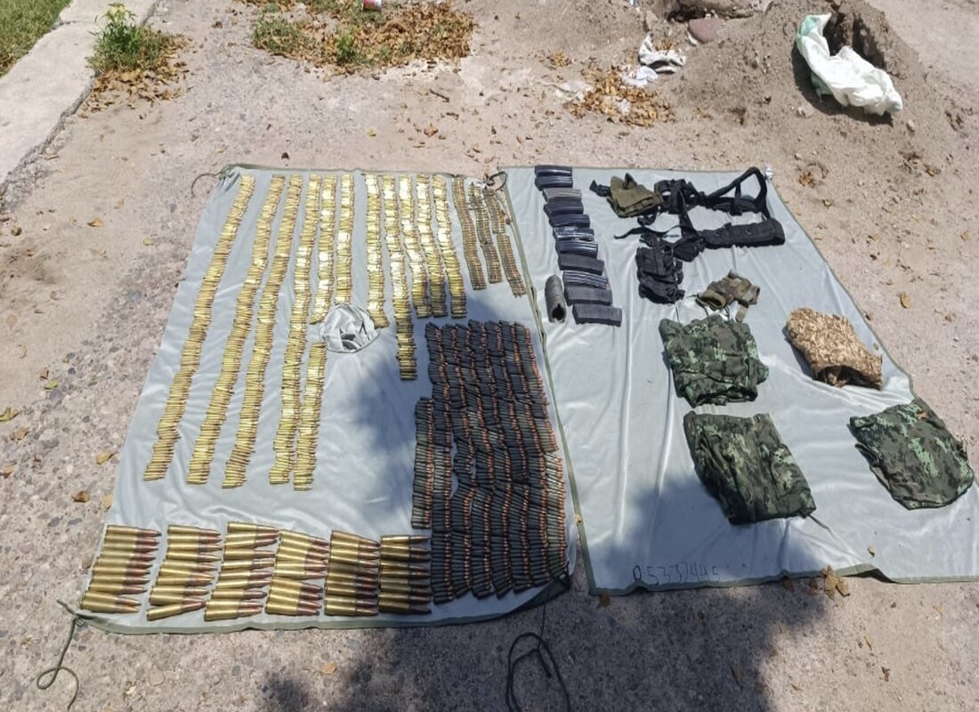 -En San Ignacio, en los poblados Las Lajas y Vado Hondo, personal de Semar y SSPC localizó y aseguró un campamento con 3,267 cartuchos, un artefacto explosivo improvisado, dos armas largas, 25 cargadores, 49 uniformes tácticos, 21 botas tácticas, 41 impermeables, cinco vehículos, tres con reporte de robo y dos motocicletas abandonadas.