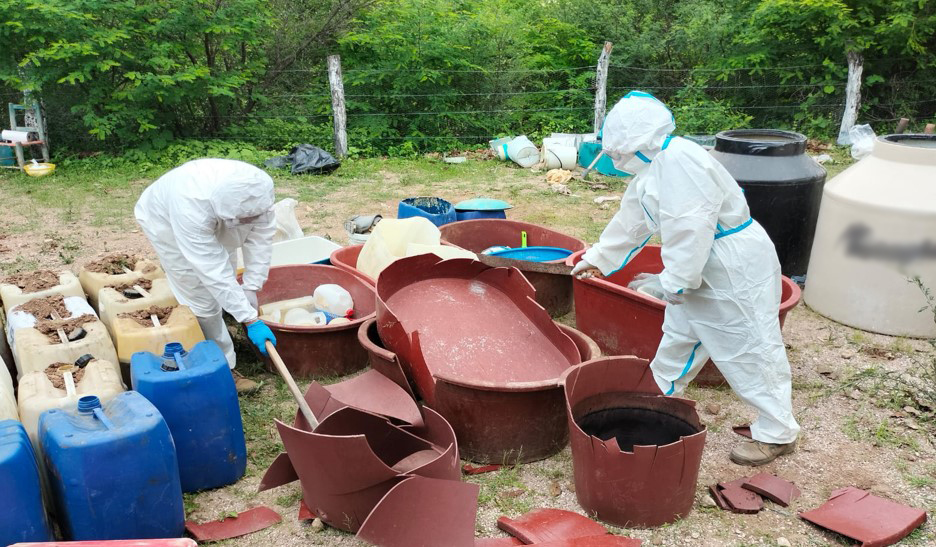 -En Sinaloa y Durango, elementos del Ejército Mexicano aseguraron 9,430 litros y 150 kilos de sustancias químicas, cuatro reactores de síntesis orgánica y dos condensadores. La afectación económica a la delincuencia organizada es de 198 millones de pesos.