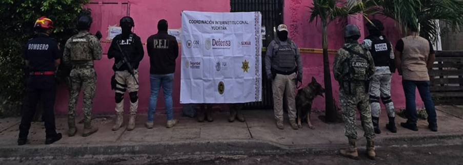 -En Mérida, elementos de GN, Ejército Mexicano, Semar, FGR, Fiscalía y Policía Estatal catearon seis inmuebles, detuvieron a cinco personas, aseguraron dos kilos de marihuana y dosis de metanfetamina.