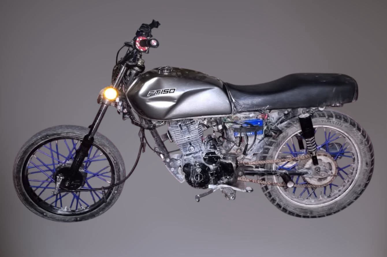 Durante la revisión, las autoridades notaron que la motocicleta marca Italika, tipo FT150, de color gris con negro y sin placas de circulación, presentaba irregularidades graves: el número de serie estaba borrado y el número de motor se encontraba rayado, haciéndolo ilegible.