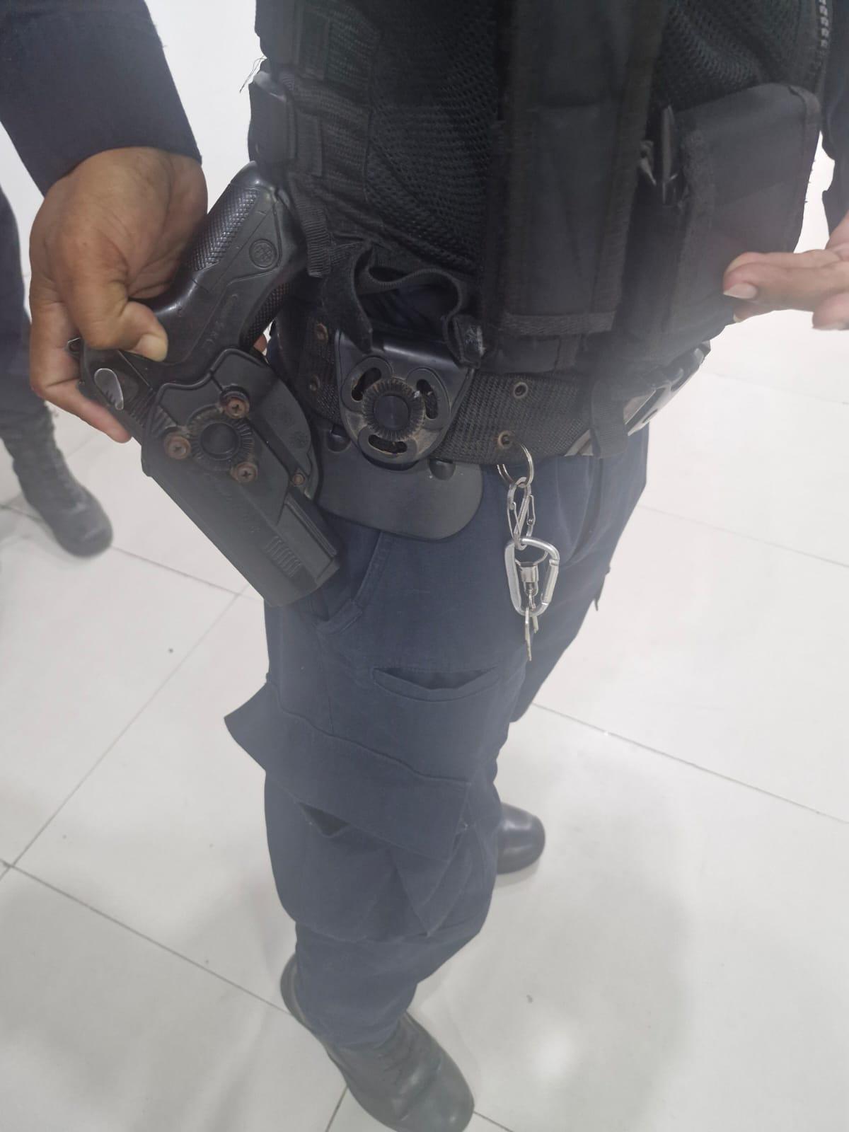 Sin embargo, gracias a la intervención de otro policía, el arma fue asegurada antes de que el sujeto pudiera tomarla.