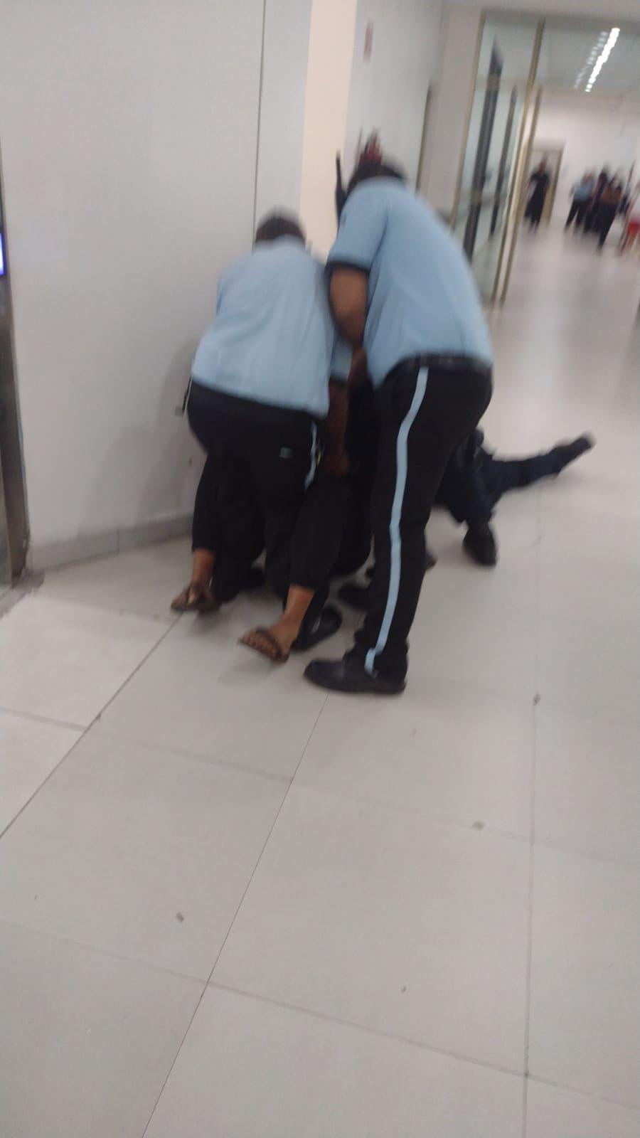 Fue en el área de urgencias donde el detenido se tornó violento, iniciando un forcejeo con uno de los elementos de seguridad.