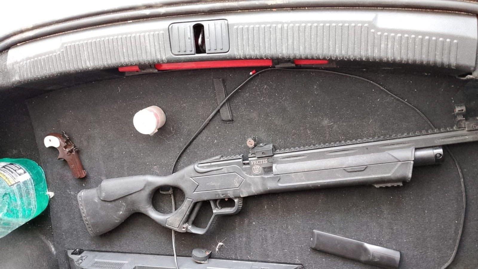 Durante la revisión del automóvil, los agentes localizaron una escopeta y un revólver, además de varios cartuchos útiles. Ninguno de los asegurados pudo acreditar la legal portación de las armas, por lo que fueron detenidos de inmediato.