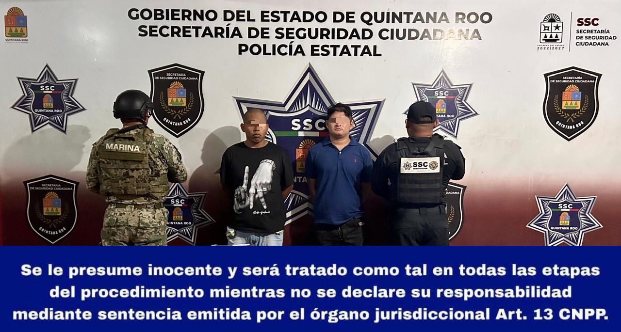 Cancún, 7 de enero. – En un operativo conjunto entre el Grupo de Investigación de la Secretaría de Seguridad Ciudadana y la Secretaría de Marina, se logró la captura de dos sujetos por su probable participación en delitos contra la salud en el municipio de Benito Juárez.