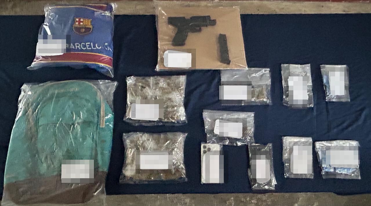 Entre sus pertenencias se aseguraron 117 bolsitas con presunta marihuana, 34 envoltorios azules con polvo blanco similar a la cocaína y 16 bolsitas con fragmentos sólidos rosados, presuntamente crack.
