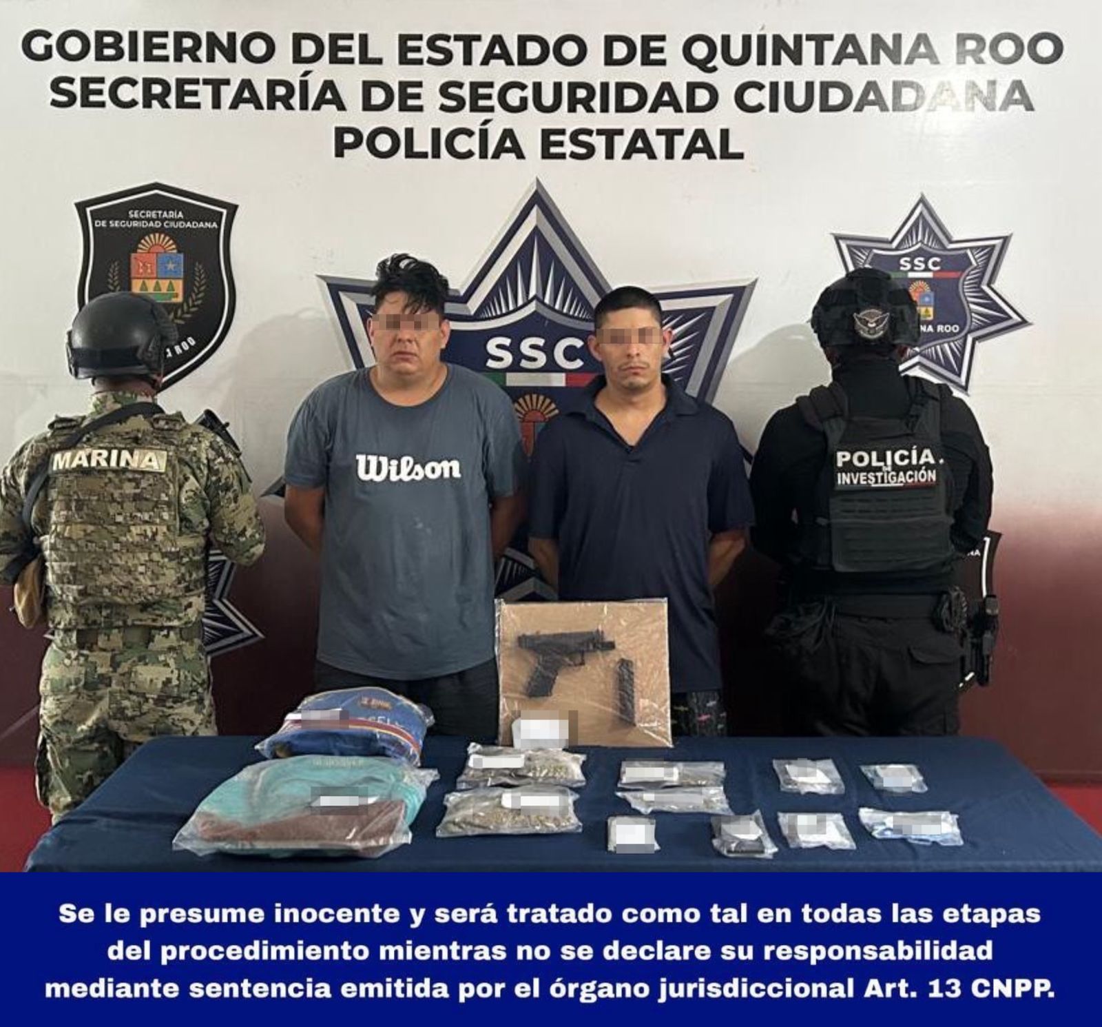Detienen a Dos Hombres con Droga y Una Réplica de Arma de Fuego en la Supermanzana 91 de Cancún