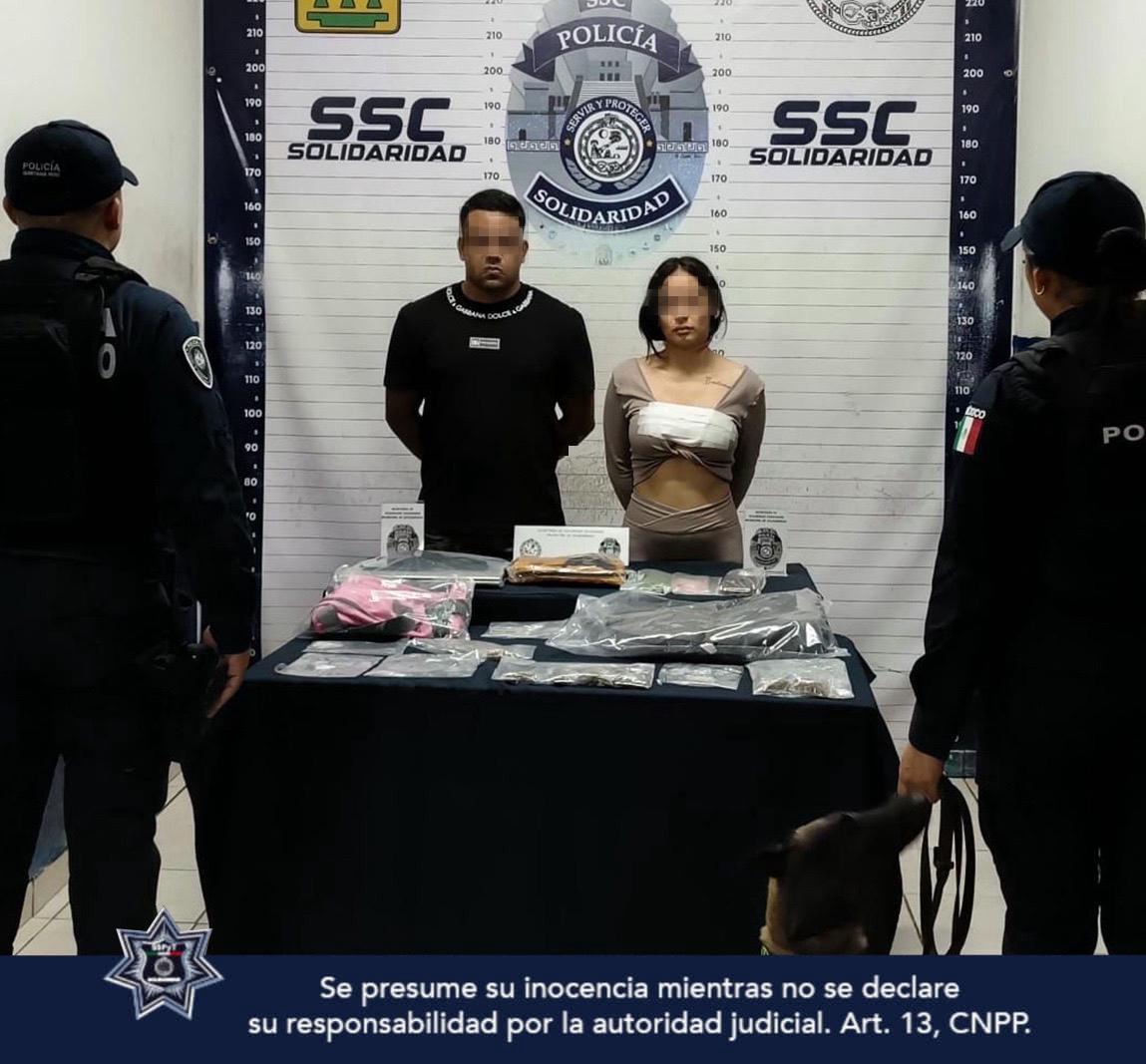 PLAYA DEL CARMEN, 13 de diciembre. – La Secretaría de Seguridad Ciudadana Municipal (SSCM) de Solidaridad detuvo a dos personas en posesión de 27 dosis de posibles narcóticos en la colonia Ejidal.