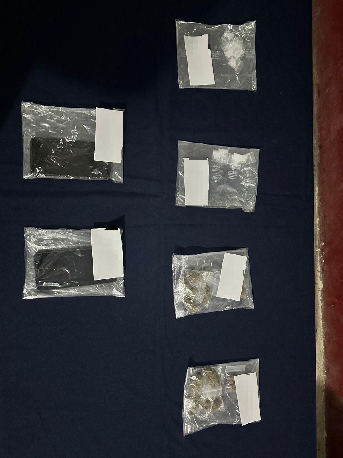 Ante la flagrancia del acto, los uniformados procedieron a interceptarlos para realizar una revisión de rutina, asegurándoles 12 bolsas con marihuana, además de 11 envoltorios que contenían una sustancia sólida y cristalina similar a la droga conocida como cristal. También les fueron confiscados dos teléfonos celulares que portaban al momento del arresto.